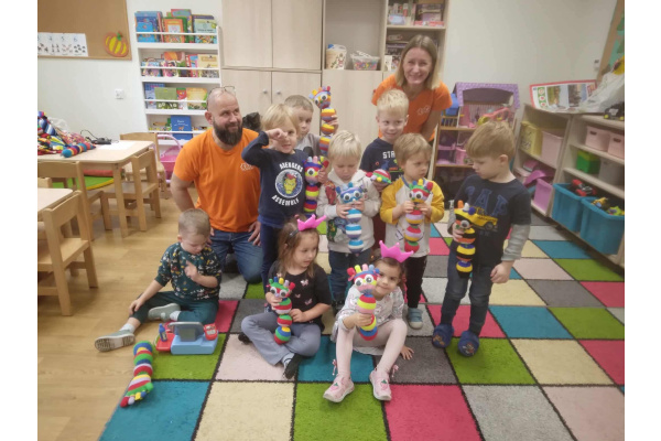 W listopadzie przedszkolaki uczestniczyły w ciekawych warsztatach. Samodzielnie przygotowały wesołe gąsienice z kolorowych skarpetek. Tego dnia każdy przedszkolak wrócił do domu w towarzystwie nowej przytulanki.
