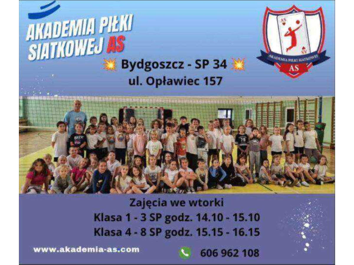 Informujemy, że zajęcia siatkówki odbywać się będą we wtorki.Klasy 1-3 godz. 14.10-15.10Klasy 4-8 15.15-16.15