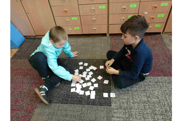 Nauka poprzez zabawę to jedna z lepszych metod przyswajania wiedzy. Uczniowie klasy 2a przygotowali ortograficzne karty memory. Następnie w parach rozpoczęli wspólną grę. Nie było łatwo. Gra pozwoliła dzieciom utrwalić pisownię wyrazów z trudnościami ortograficznymi, stanowiła też doskonały trening koncentracji uwagi i pamięci. Jeszcze do tego wrócimy.