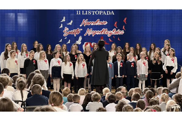 12 listopada 2025 r. cała społeczność szkolna uczestniczyła w wyjątkowym koncercie pieśni patriotycznych przygotowanym przez zespół wokalny „Melange” pod kierunkiem p. Lidii Januszewskiej.
