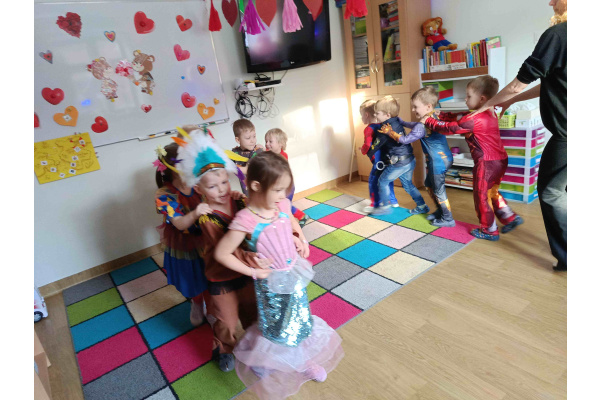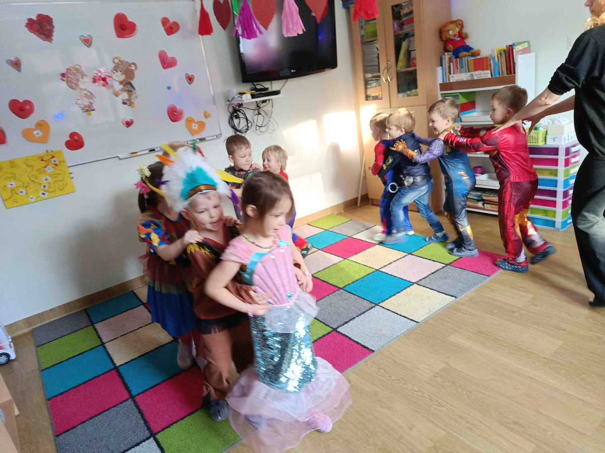 Jeden z poniedziałków w przedszkolu był kolorowy, głośny i pełen uśmiechów Dzieci z niecierpliwością czekały na bal karnawałowy. W murach przedszkola pojawili się: Spider-Man, Iron Man oraz Tanos, Policjant, Rubbel, Indianin i Szeryf, Kowboj, Klaun i Syrenka.