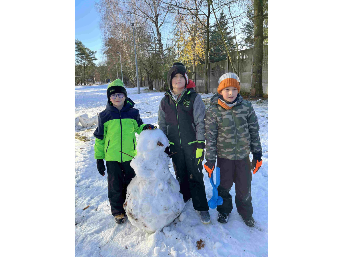 Uczniowie z klasy 2b wykorzystali biały puch za oknem do wesołej i aktywnej zabawy. Powstały piękne bałwanki i śnieżne kule. Nie zabrakło również bitwy na śnieżki. Zadowolone i pełne energii dzieci chętnie wróciły do nauki na pozostałe lekcje. Z niecierpliwością czekamy na kolejny śnieg…
