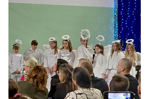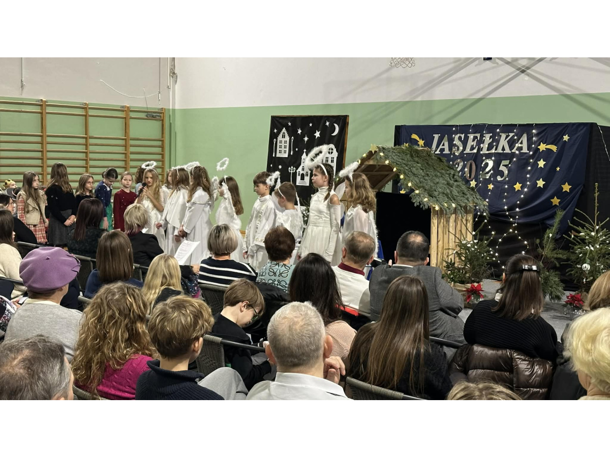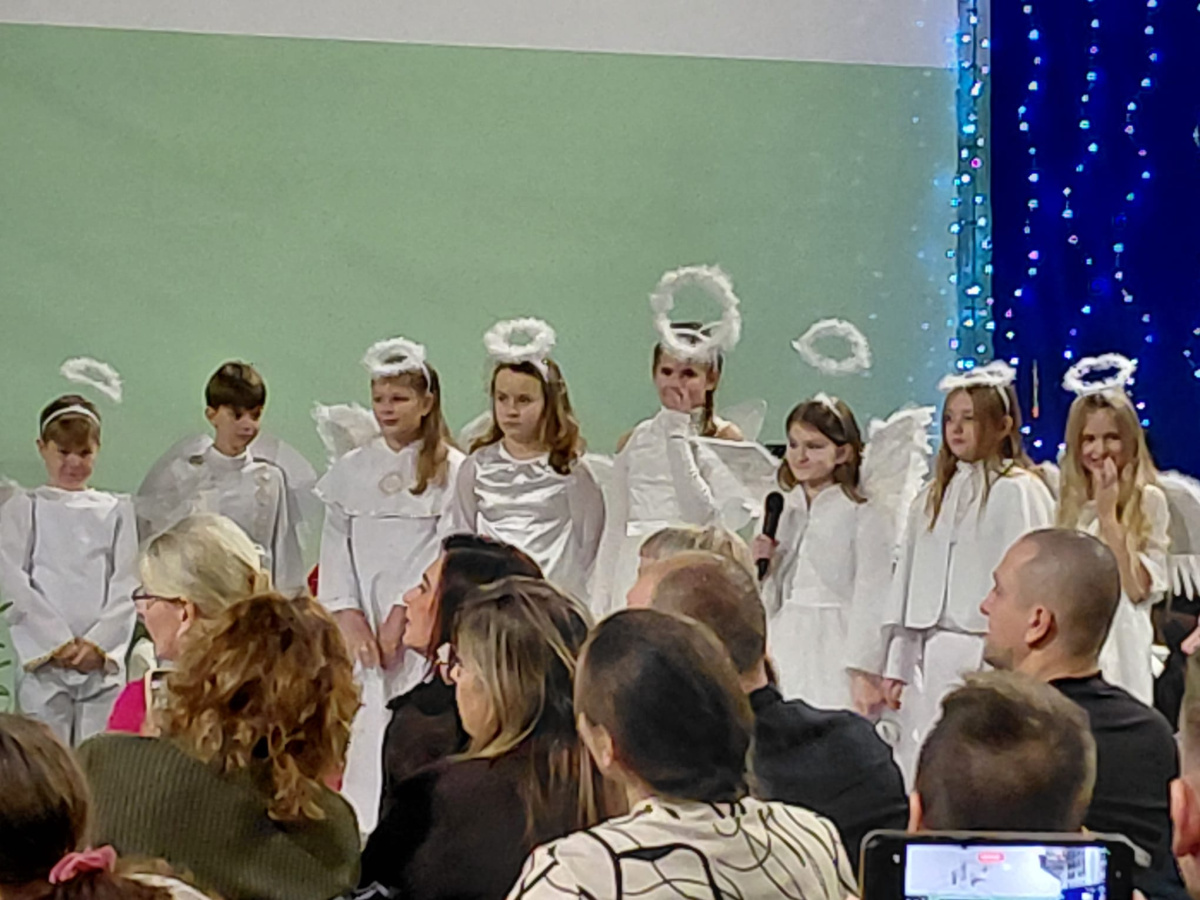 Po raz kolejny w naszej szkole zapanowała świąteczna atmosfera. Uczniowie z klas III przygotowali Jasełka, które wprowadziły wszystkich w radosny, bożonarodzeniowy nastrój. Całość zwieńczył koncert kolęd i pieśni bożonarodzeniowych w wykonaniu zespołu „Melange”. W repertuarze znalazły się m.in. „Bóg narodzi się”, „Grajmy Panu”, „Gdy śliczna Panna”, „Cicha noc”, „Przekażmy sobie znak pokoju”, pastorałka „Od serca do ucha”, „Zaśpiewajmy Jezusowi”, „Hallelujah” oraz tradycyjne „Feliz Navidad”.