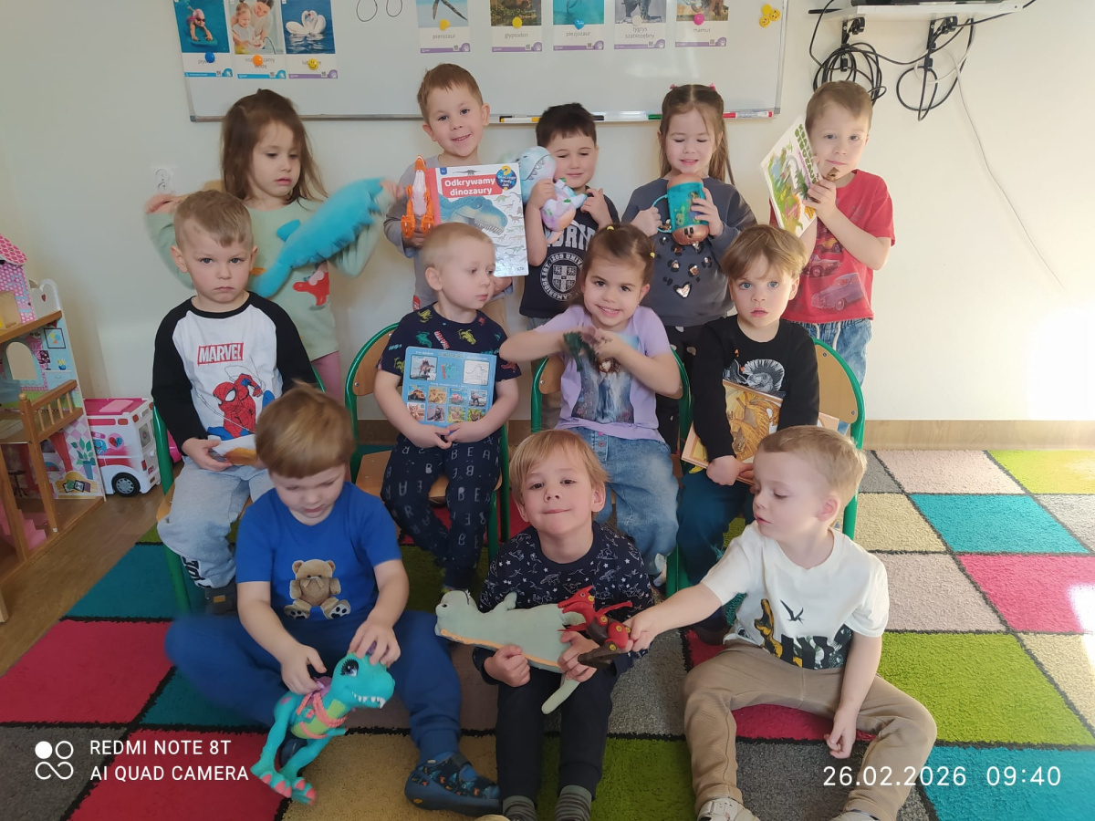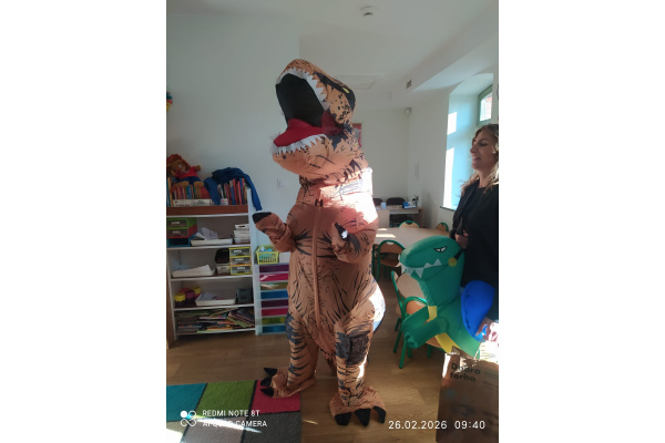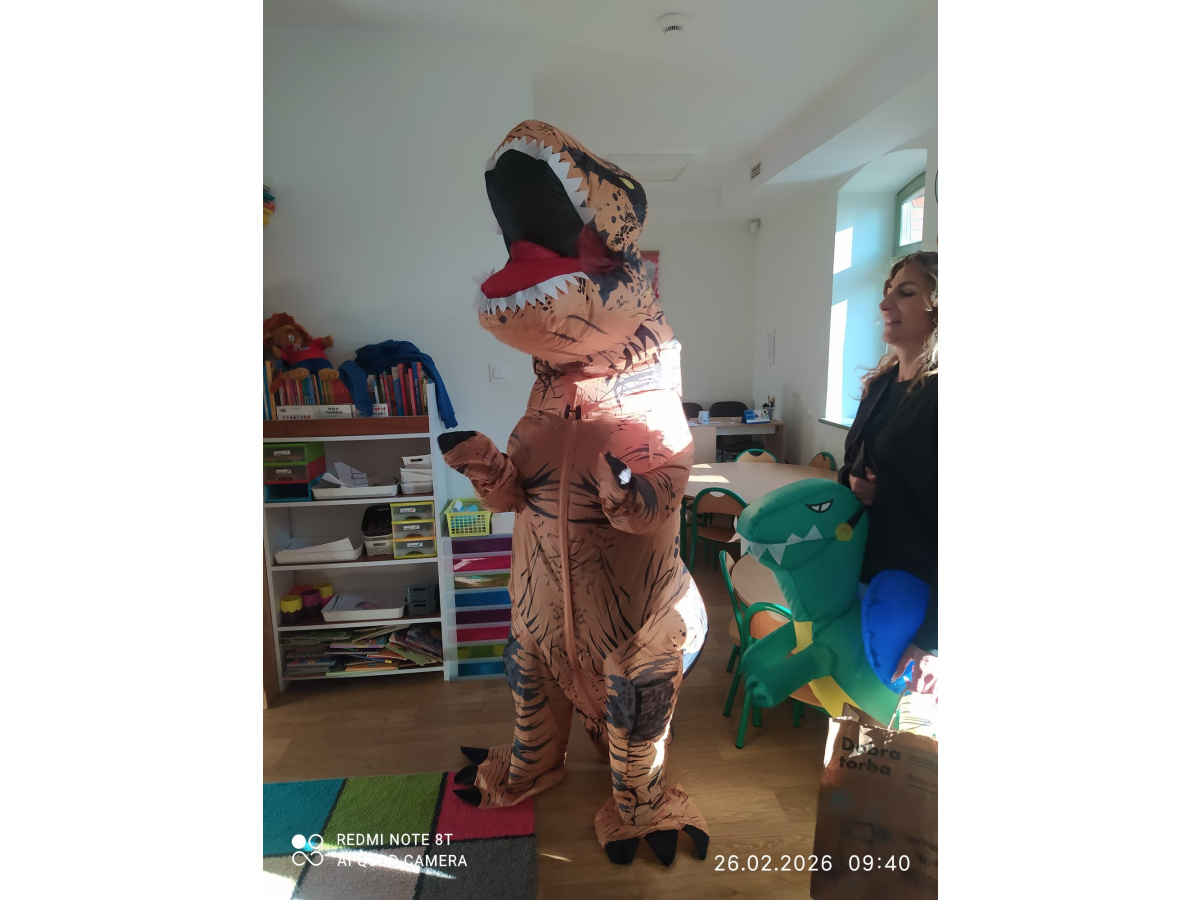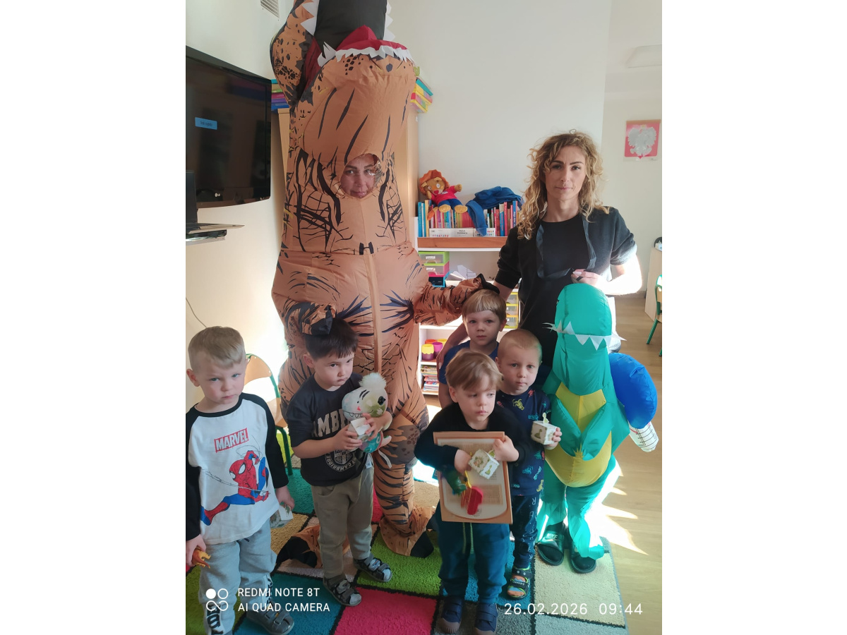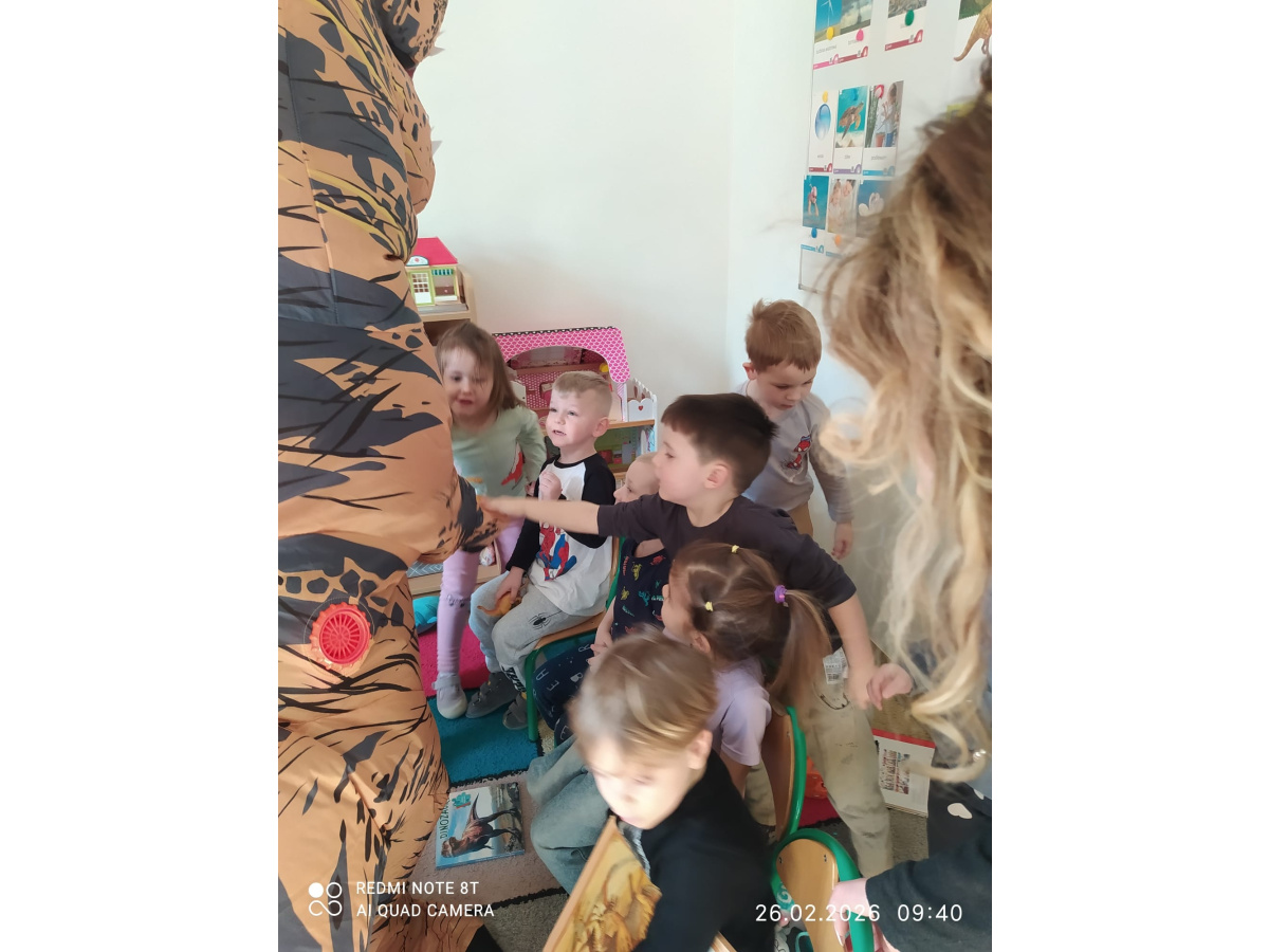 26 lutego z okazji Dnia Dinozaura zawitały w przedszkolu małe i wielkie gady. Podczas wspólnych zabaw towarzyszył dzieciom Dinek. Przybijał piątkę, pozował do zdjęć a przede wszystkim sprawił dzieciom wiele radości.