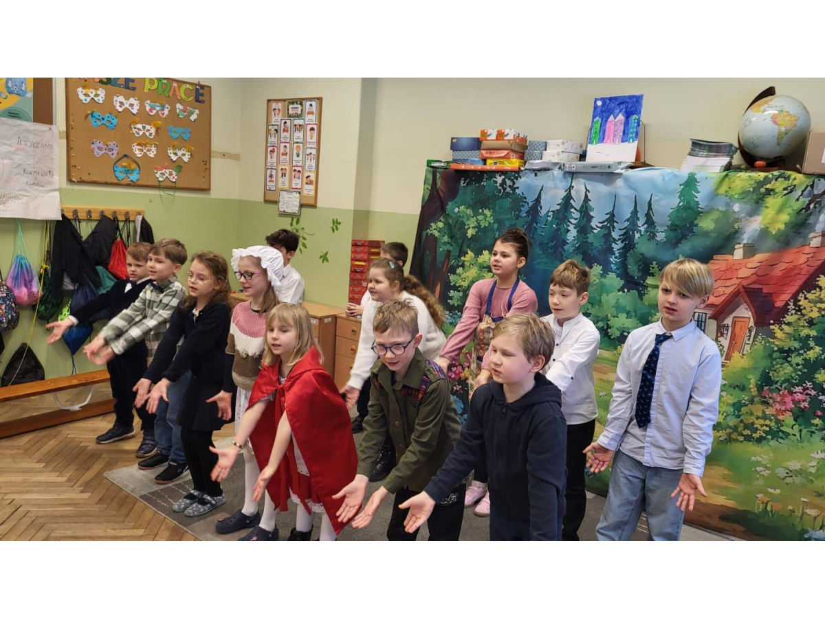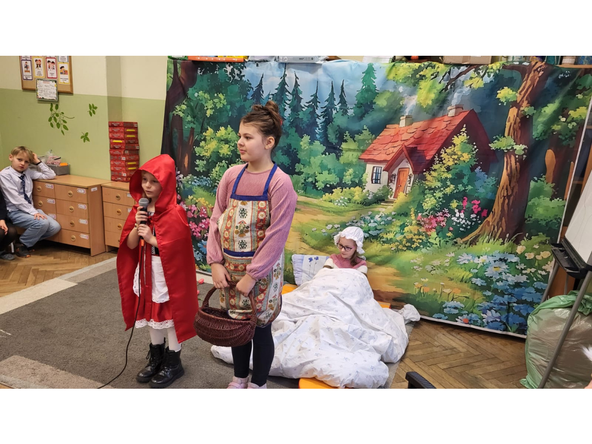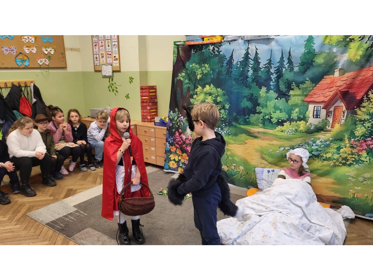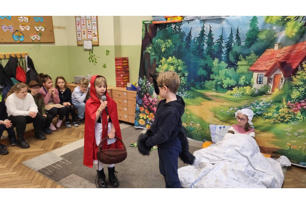 Przed przerwą feryjną uczniowie z klasy 2b zaprosili swoje ukochane babcie oraz dziadków na przedstawienie pt. ,,Czerwony Kapturek”. W ten sposób dzieci uczciły styczniowy Dzień Babci i Dziadka. Młodzi aktorzy z dużym zaangażowaniem wcielili się w bajkowych bohaterów. Ich wspaniała gra wywołała radość oraz wzruszenie wśród zaproszonych gości. Nie zabrakło również akcentów muzycznych oraz upominków wykonanych własnoręcznie przez dzieci.