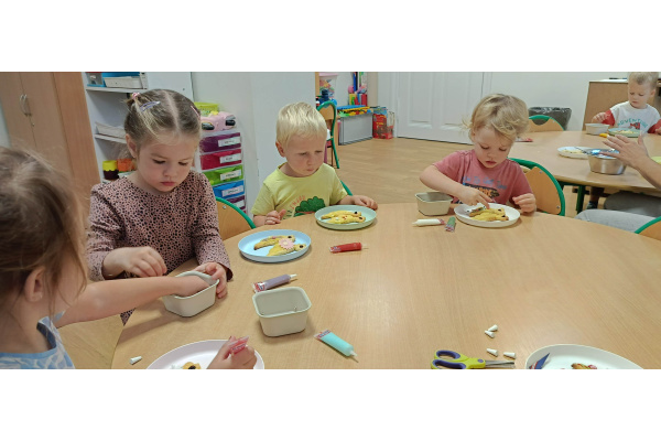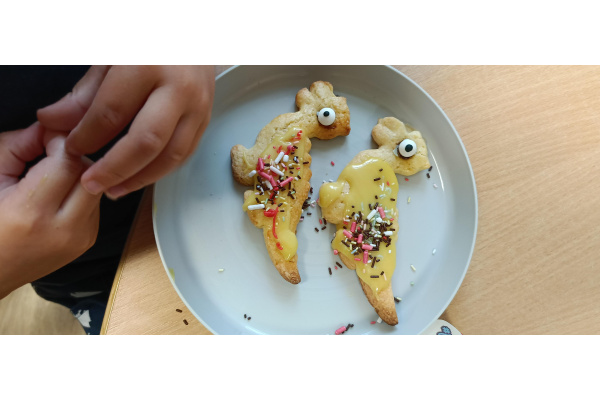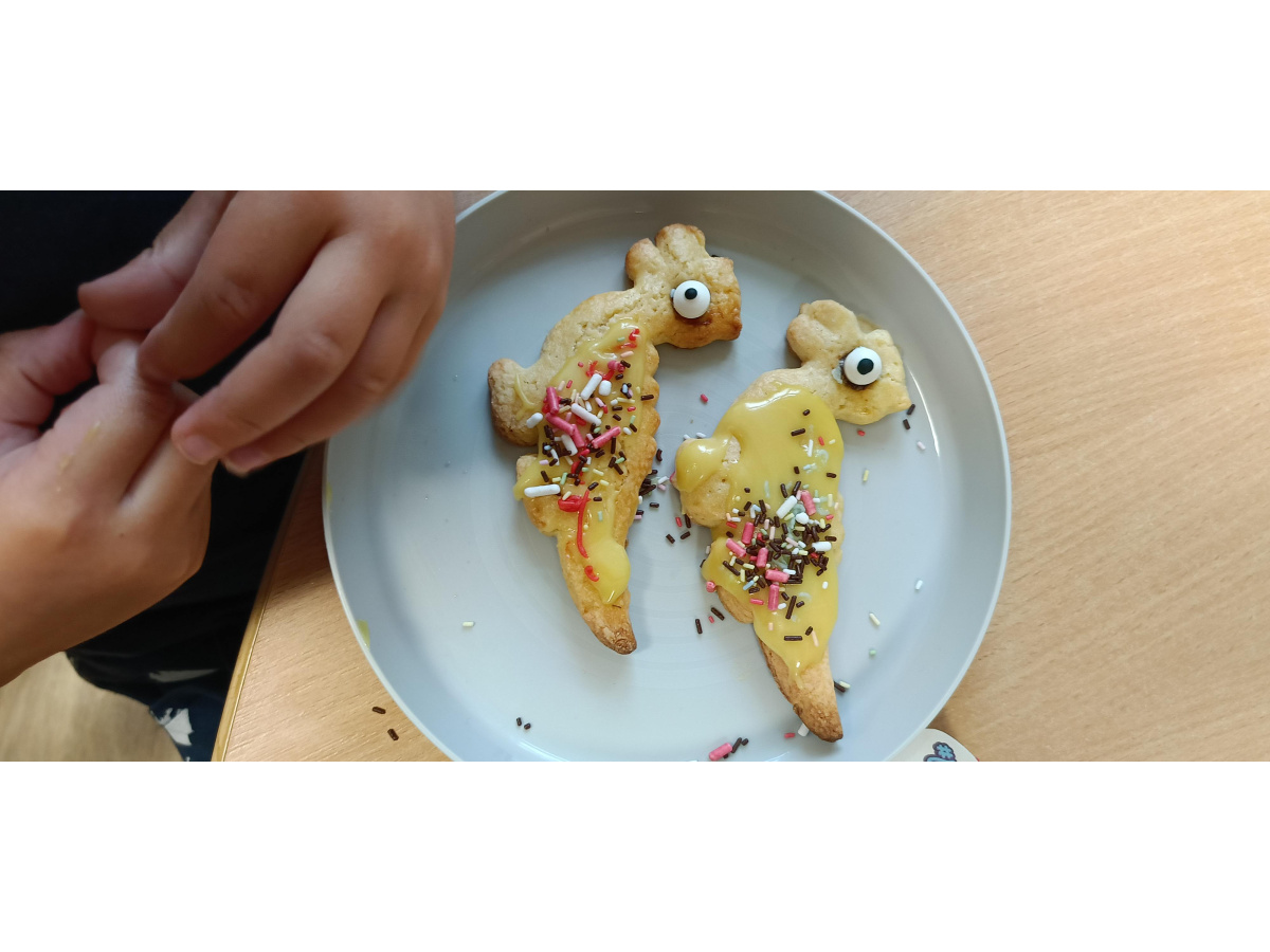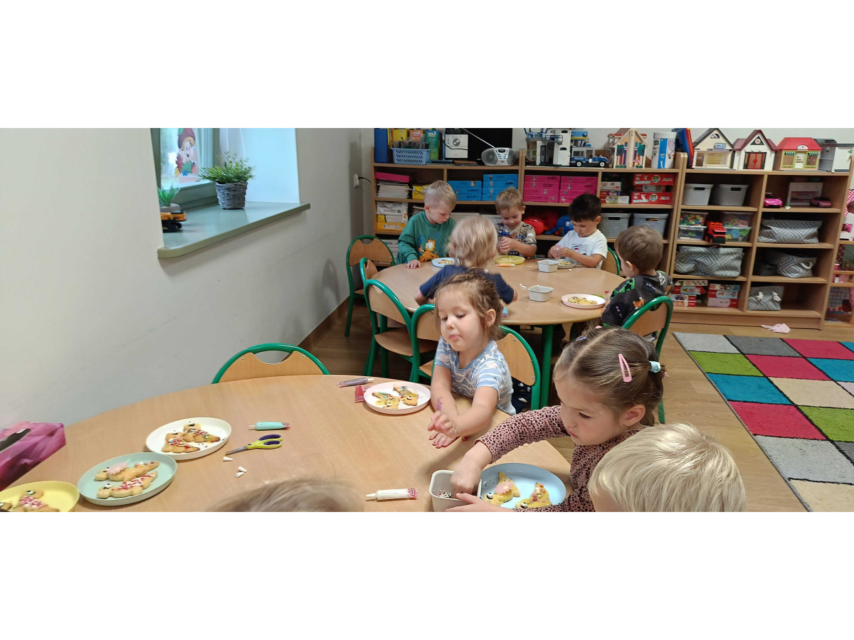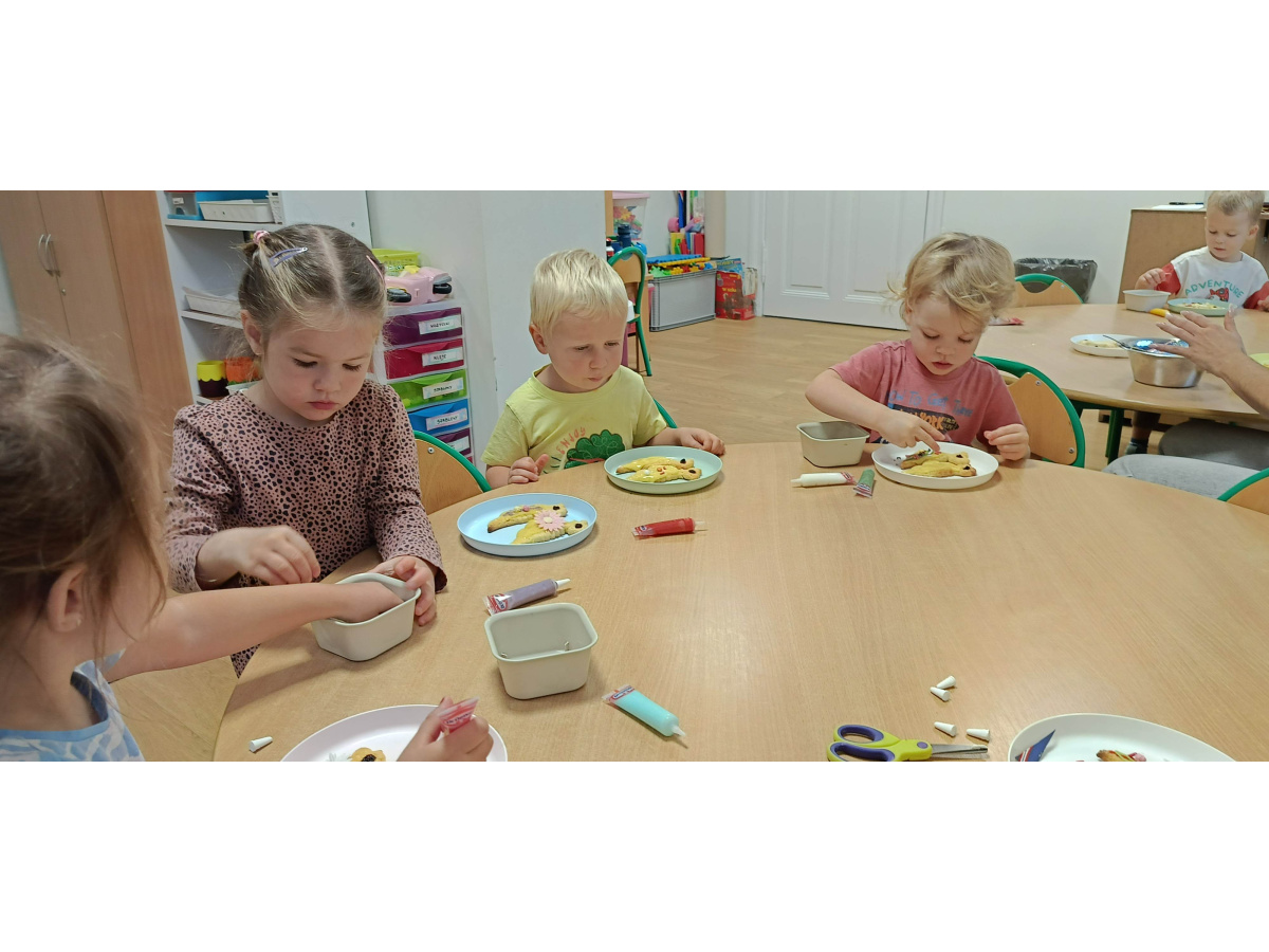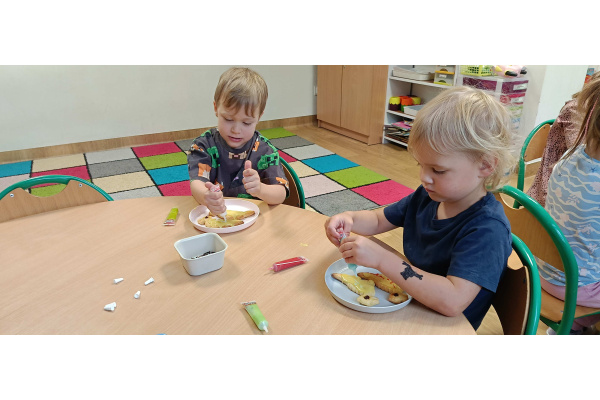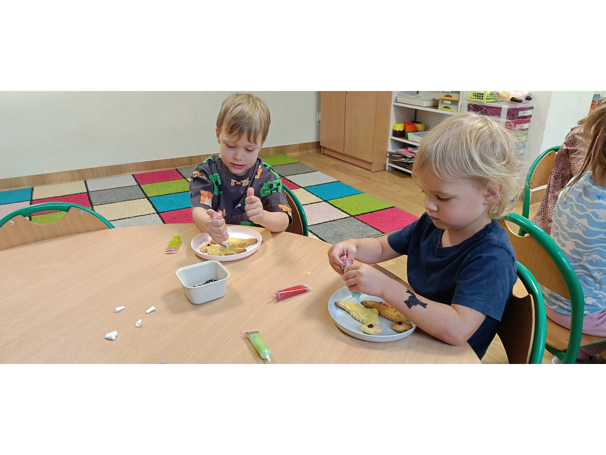 Dzień Chłopaka w grupie dzieci młodszych przebiegał w iście smakowitej atmosferze. Na początek dziewczynki zaśpiewały wszystkim chłopcom "100 lat" oraz wręczyły upominki. Tego dnia każdy przygotował słodkie ciasteczka - dinozaury. Mamy przygotowały dla każdego przedszkolaka ciastka oraz kolorowe ozdoby. Dzieci ozdobiły dinozaury według własnego pomysłu, wkładają w swoją pracę wiele serca. Do drugiego śniadania każde dziecko dostało pyszne rogaliki, które upiekła mama jednego z chłopców. Było naprawdę pysznie i smakowicie. A ozdabianie ciasteczek sprawdzi dzieciom mnóstwo radości.
