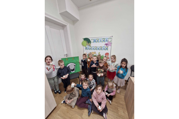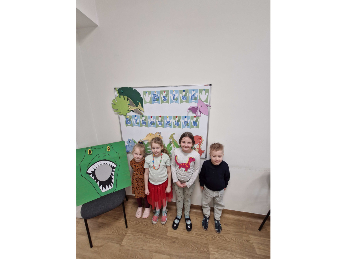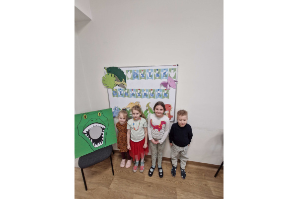W czwartek 26.02 obchodziliśmy w przedszkolu "Dzień Dinozaura". Tego dnia przypomnieliśmy sobie nazwy najpopularniejszych dinozaurów, ich wygląd oraz czym te stworzenia się odżywiały. Były gry i zabawy związane z dinozaurami. Odwiedził nas nawet T-rex, który dostarczył dla dzieci upominki i zapozował do wspólnego zdjęcia.