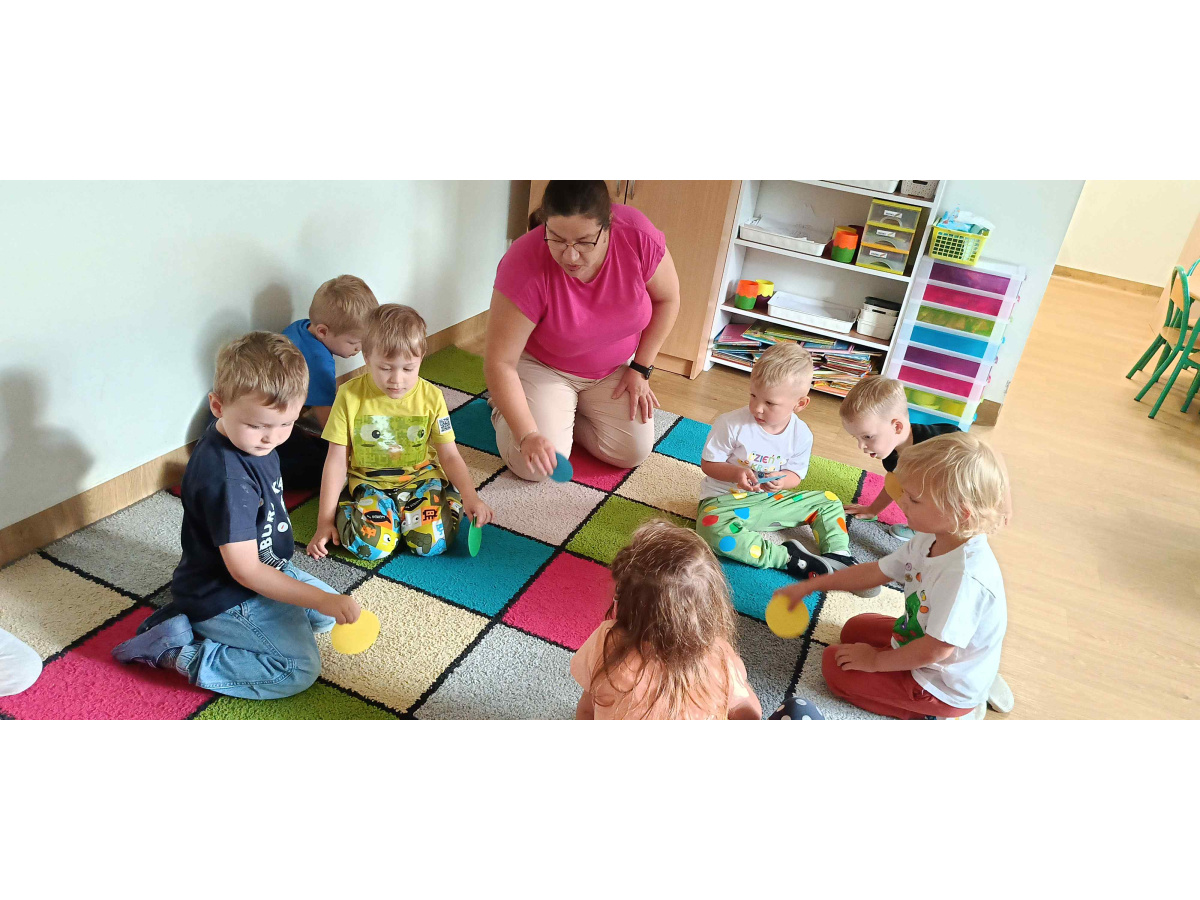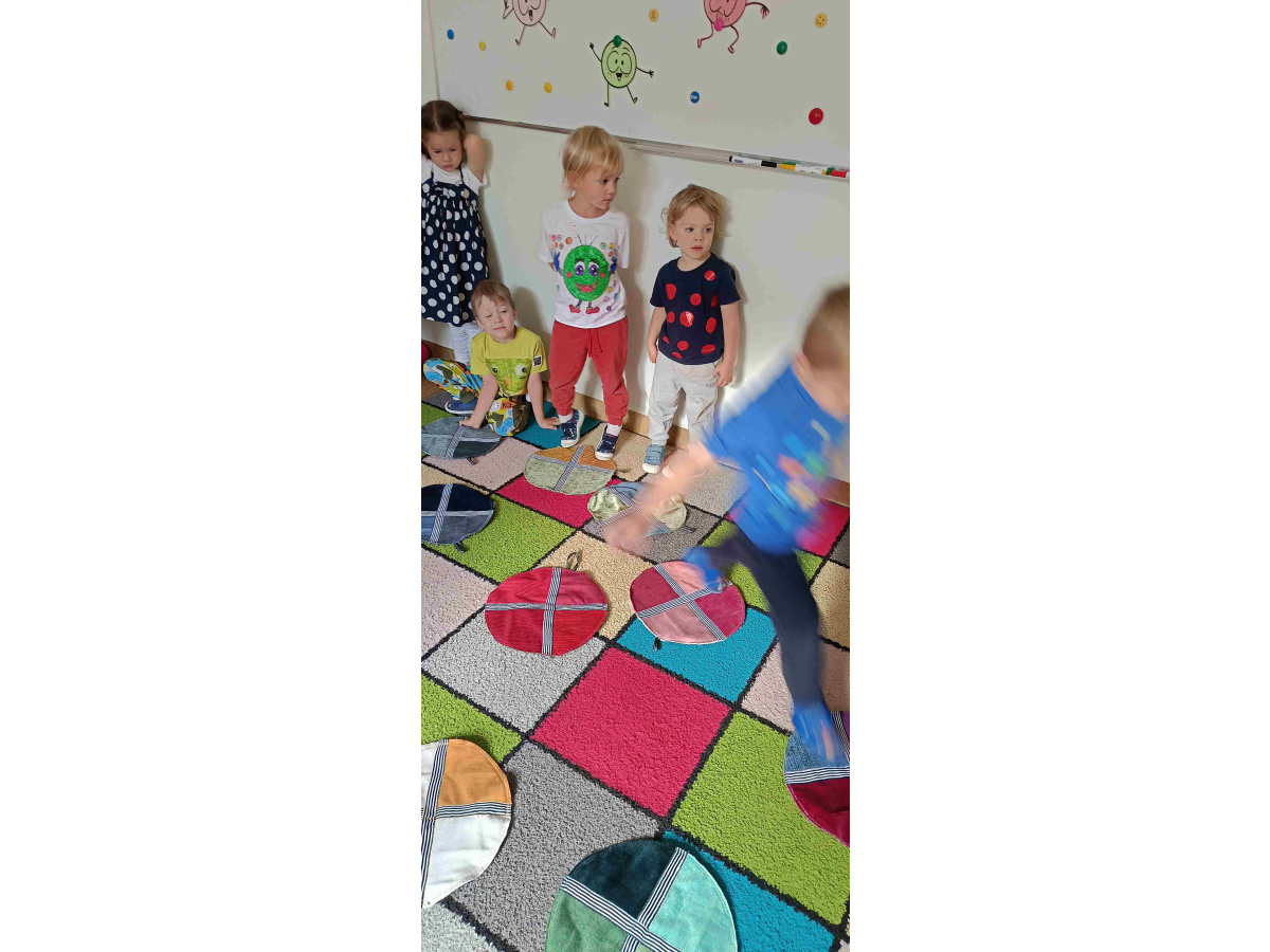 15 września w przedszkolu królowały kropki. Tego dnia dzieci brały udział w zabawach z kropkami. Były tańczące kropki, kropki - kałuże, wesoło gąsienice, kolorowe kwiatki. Na koniec przedszkolaki wykonały samodzielnie wesołe kolorowe gąsieniczki. Tego dnia każdy Maluch wrócił do domu z medalem upamiętniającym ten dzień.