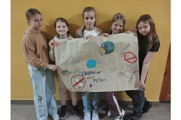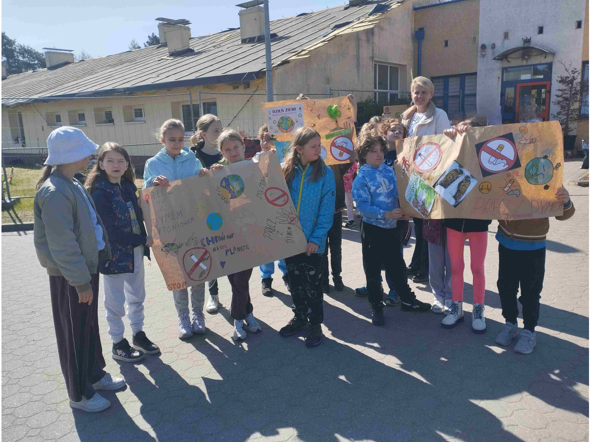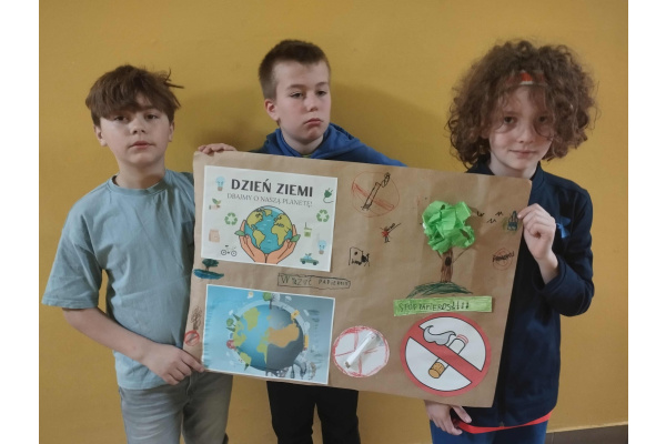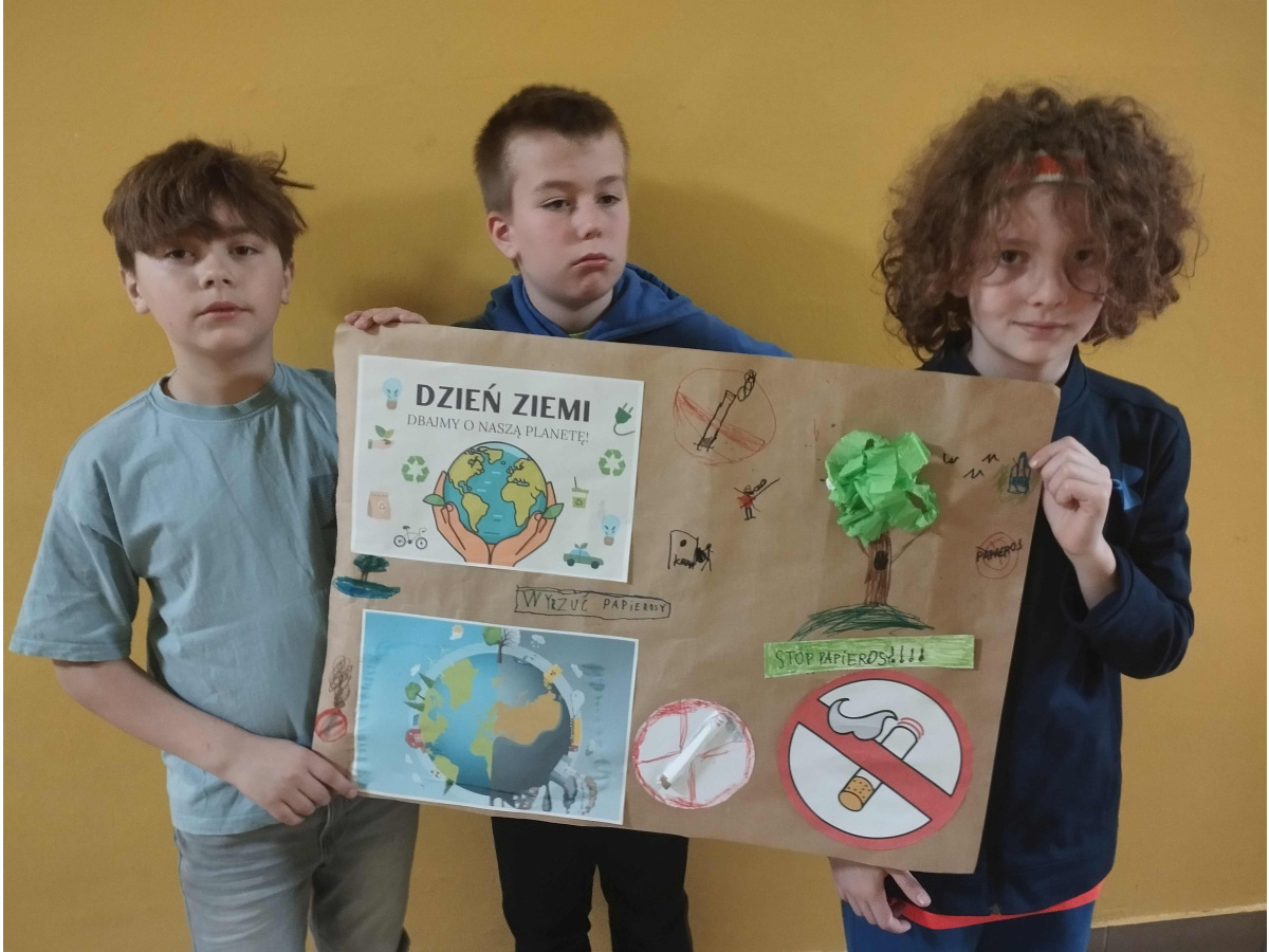 Dzień Ziemi to święto mające na celu promowanie ochrony środowiska, które przypada 22 kwietnia. Uczniowie klasy 3a aktywnie włączyli się w jego obchody, aby pokazać jak ważne jest dbanie o naszą planetę. Dzieci oglądały filmy ekologiczne o tym, co jej szkodzi, a co pomaga. Dowiedziały się, jak chronić przyrodę oraz utrwaliły zasady segregacji odpadów. Wykonały także plakaty oraz wzięły udział w szkolnym przemarszu pod hasłem „Precz z dymem tytoniowym”. Brały również udział w sprzątaniu terenu wokół szkoły.