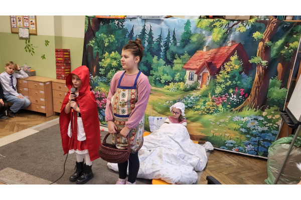 Przed przerwą feryjną uczniowie z klasy 2b zaprosili swoje ukochane babcie oraz dziadków na przedstawienie pt. ,,Czerwony Kapturek”. W ten sposób dzieci uczciły styczniowy Dzień Babci i Dziadka.