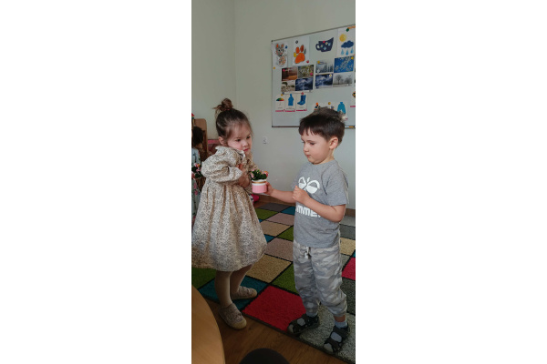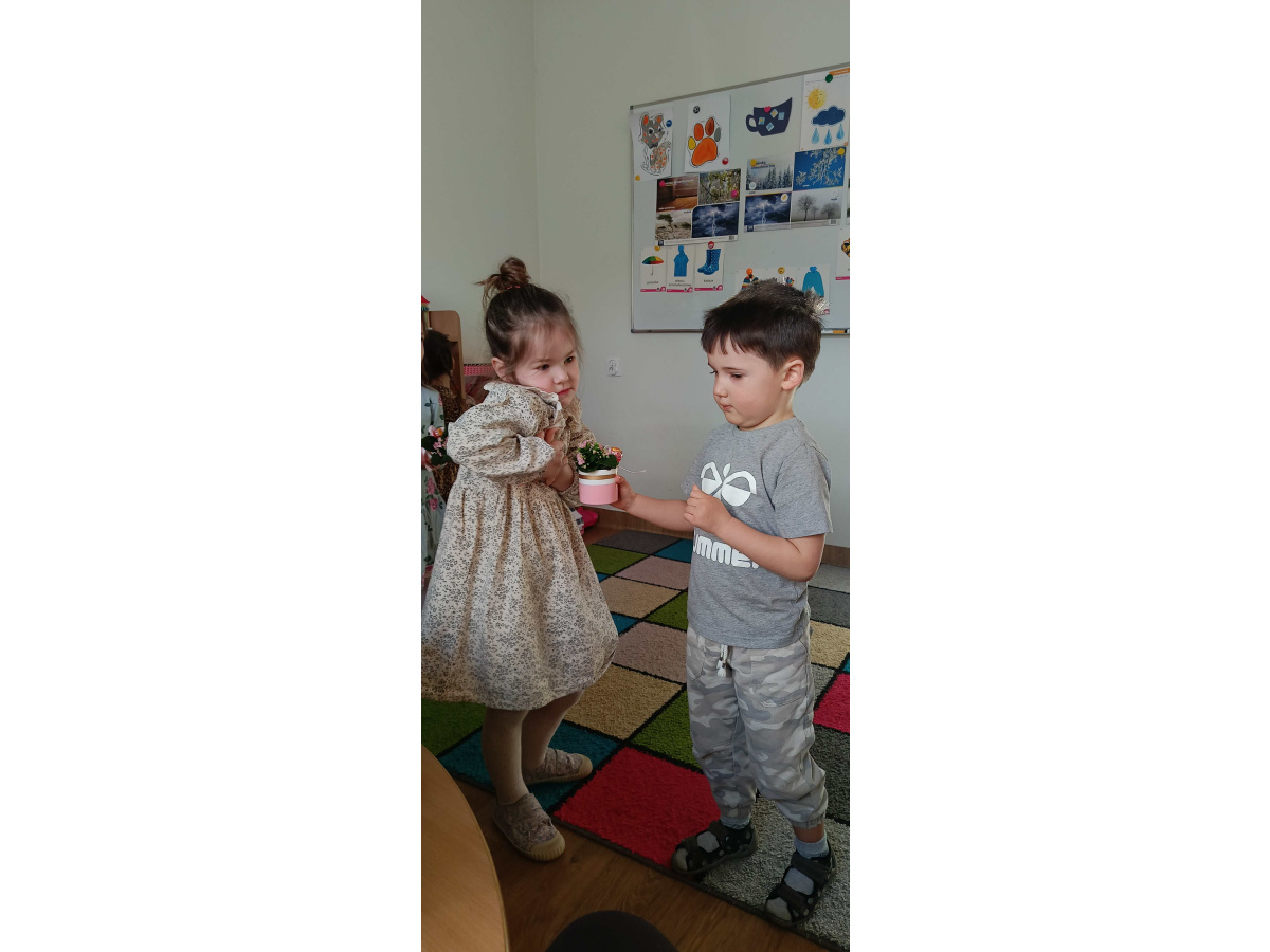 Za nami Dzień Kobiet. W grupie Maluszków nie mogło zabraknąć życzeń oraz upominków dla koleżanek. Chłopcy zaśpiewali "100lat" oraz wręczyli upominki.