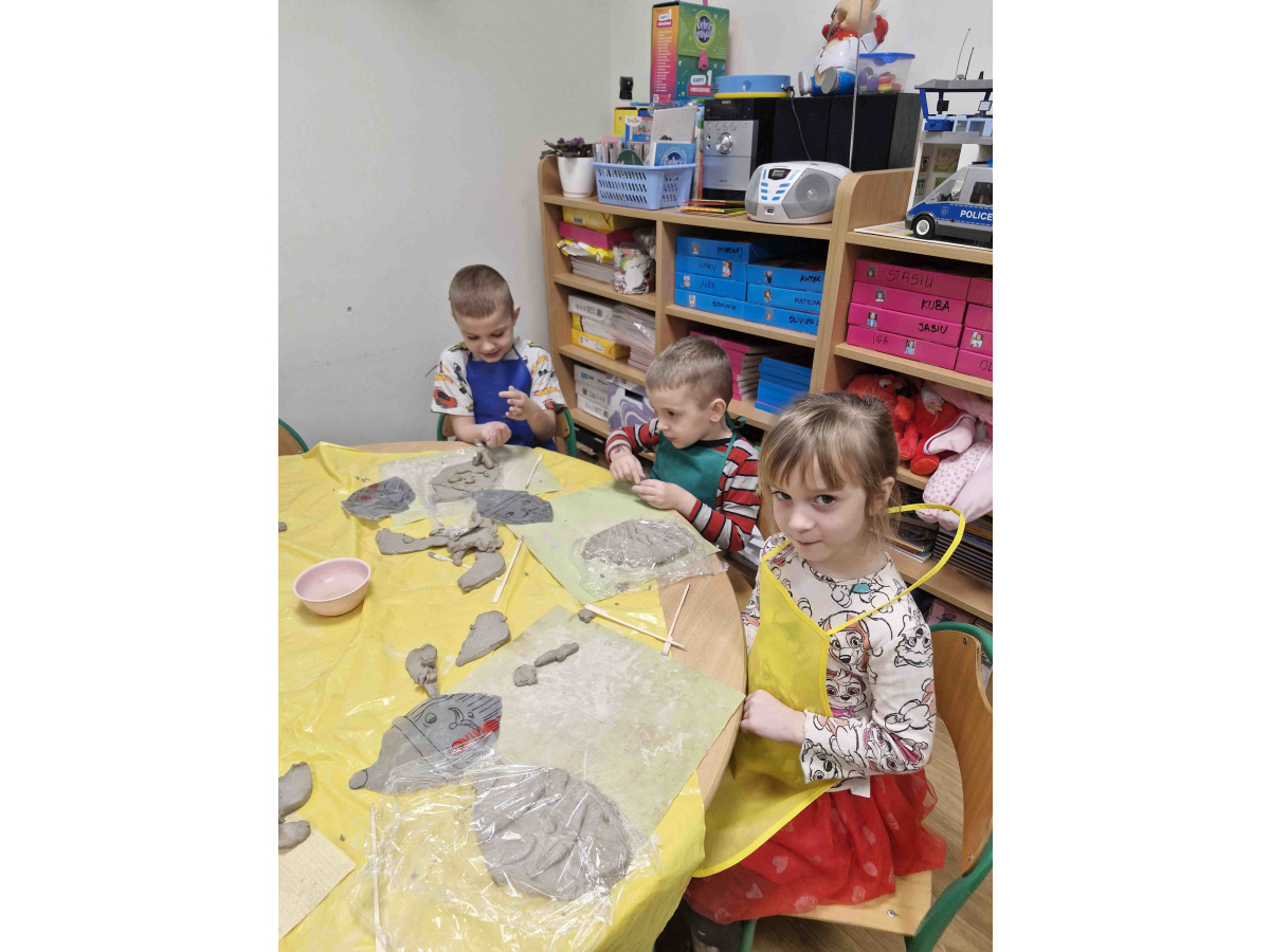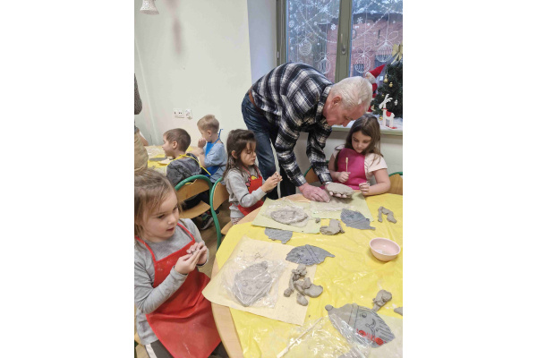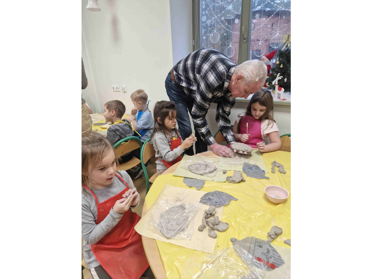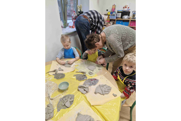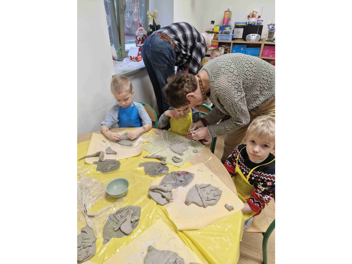 W czwartek 4 grudnia odwiedziła nas Pani Iwonka wraz z mężem. Porozmawiała z dziećmi nt. zbliżających się świąt a później wykonała z przedszkolakami cudowne Mikołaje z gliny. Już nie możemy się doczekać aby zabrać wypalone prace do domu.