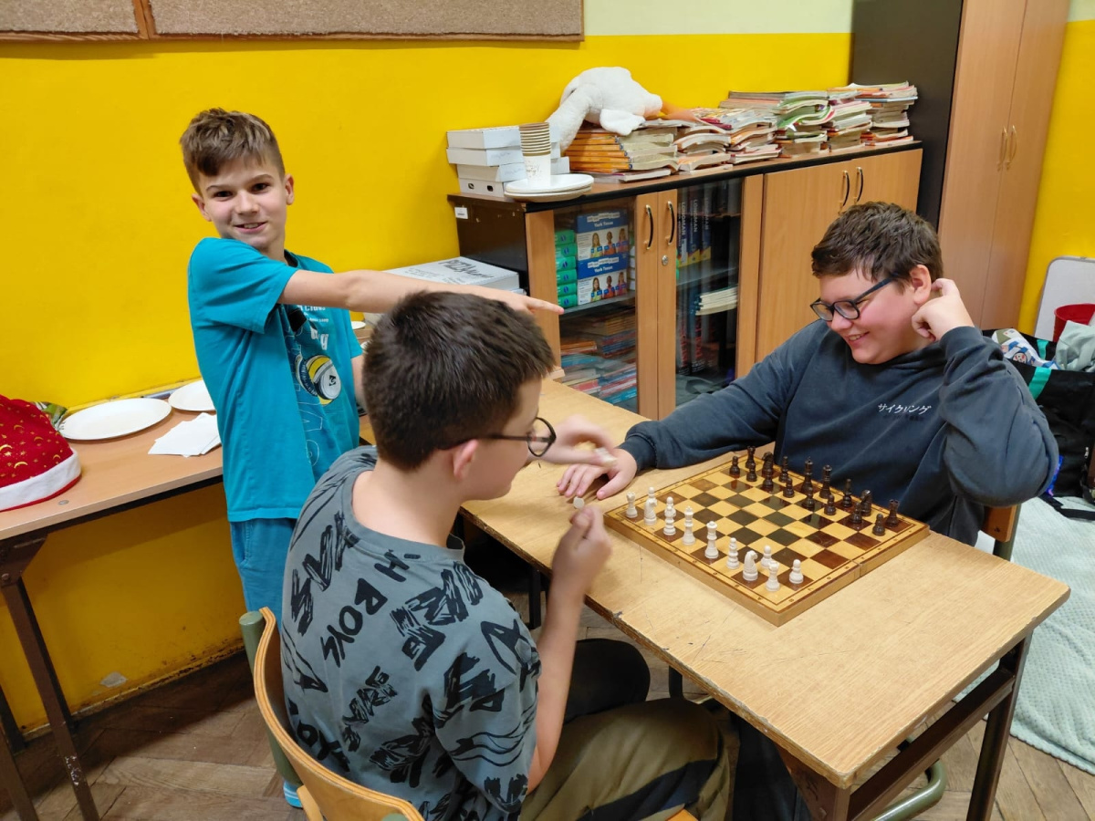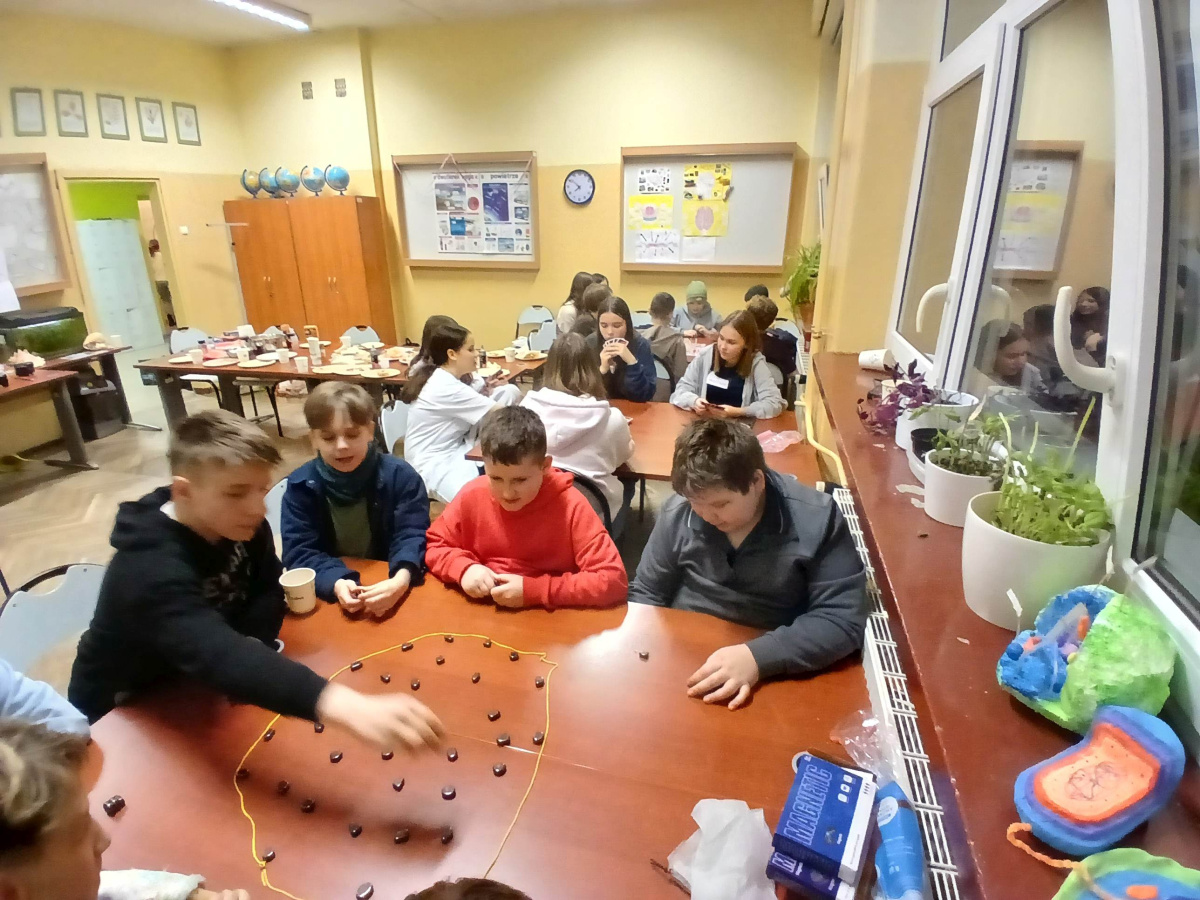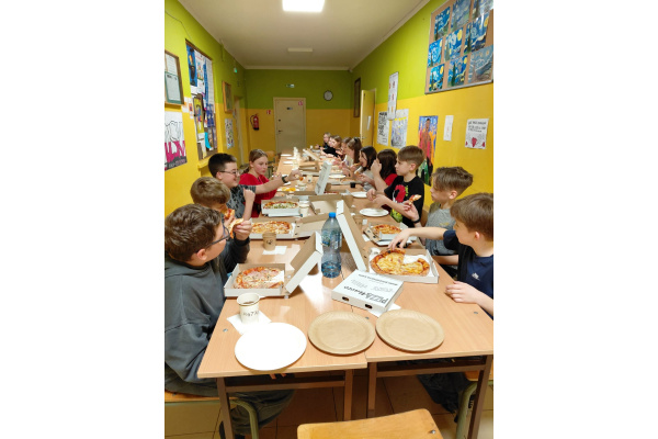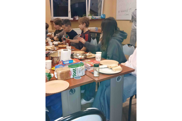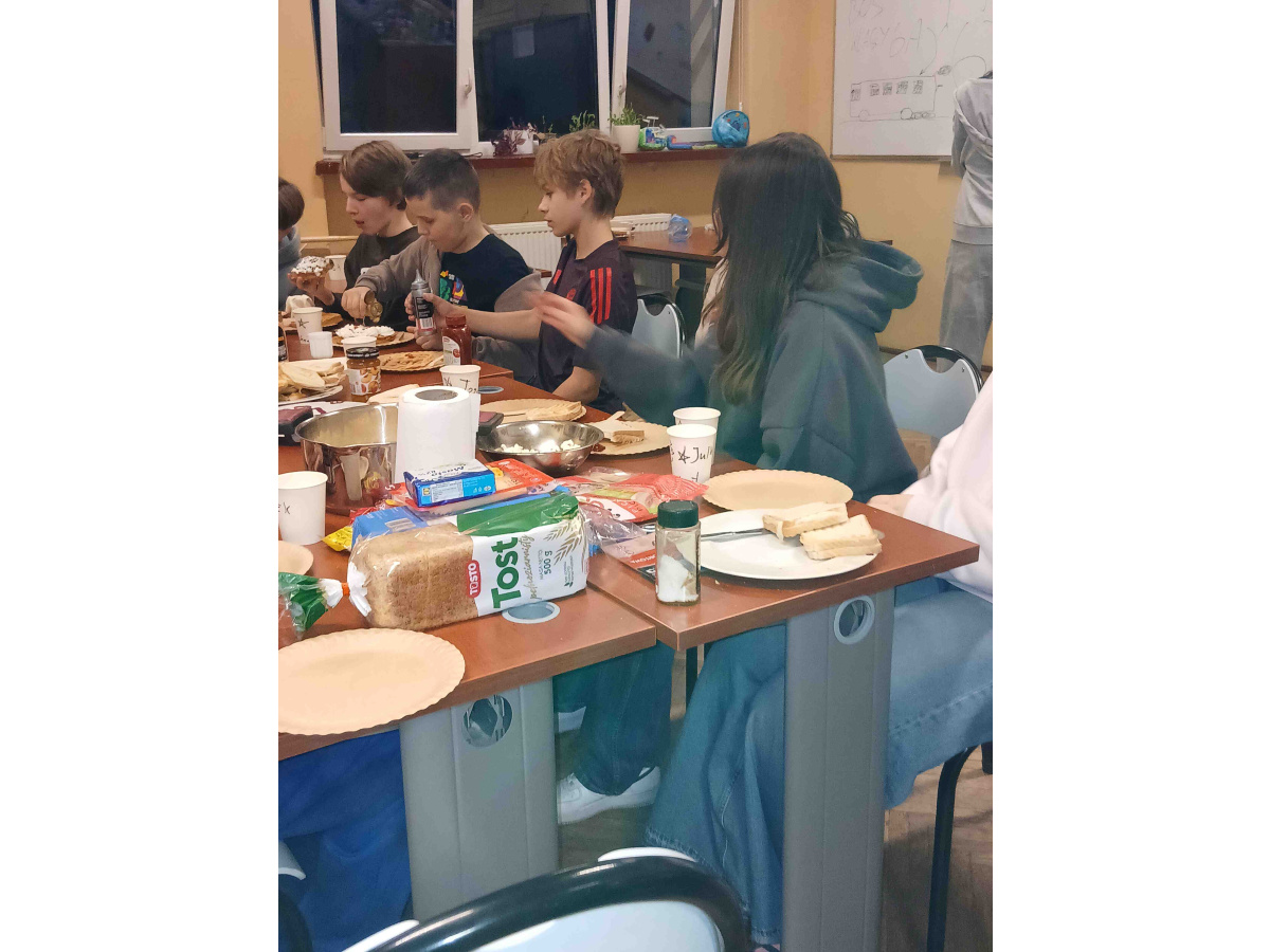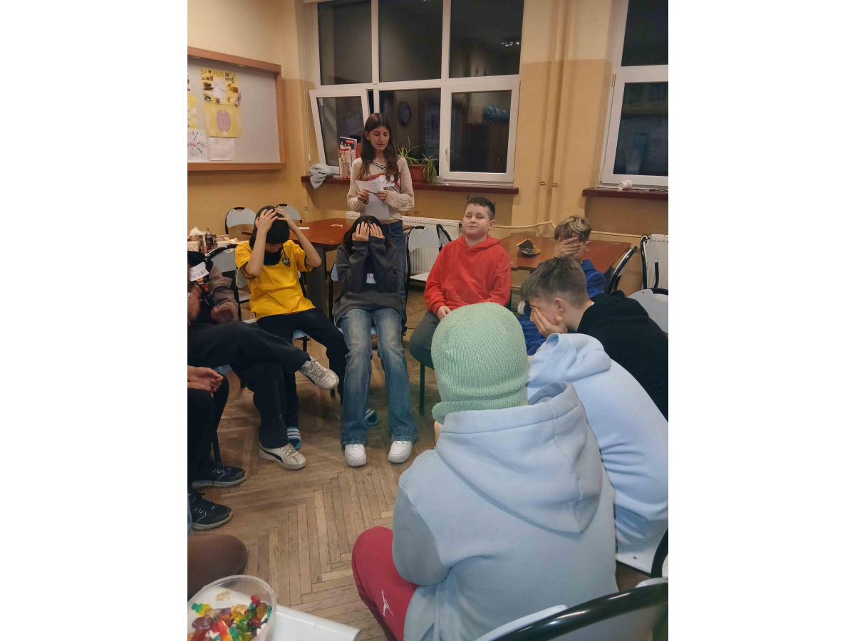 5 grudnia klasy 5b i 6 spotkały się o 18.30, by wspólnie spędzić wieczór. Były różne zabawy, pyszna pizza, gofry, tosty, słodkości. Uczniowie z ogromnym zaangażowaniem przygotowywali również kartki świąteczne dla pacjentów szpitala oraz ozdabiali pierniczki słuchając świątecznej muzyki. Na piątoklasitów podczas wieczoru czekała dodatkowa niespodzianka-prezenty od Św. Mikołaja.