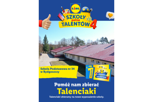 Szanowni Państwo, Drodzy Uczniowie, już po raz czwarty nasza szkoła bierze udział a akcji Lidla "Szkoły pełne talentów". Mamy zebrane ponad 2500 Talenciaków. W tym roku zbieramy na mobilny zestaw nagłośnieniowy, drukarkę do przedszkola i jeśli uda nam się to kolejną szafkę z klockami. Dziękujemy za już ofiarowane Talenciaki i czekamy na kolejne ;-)