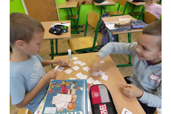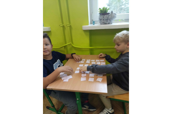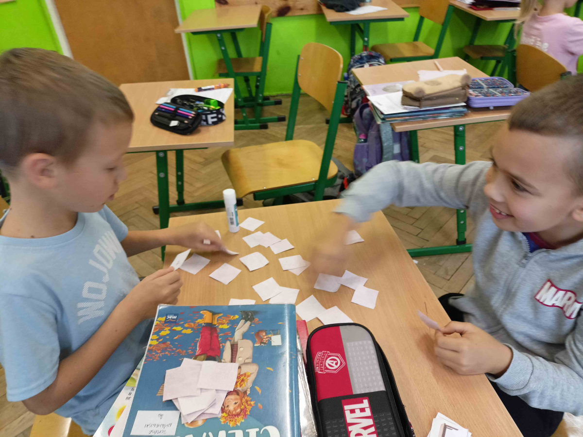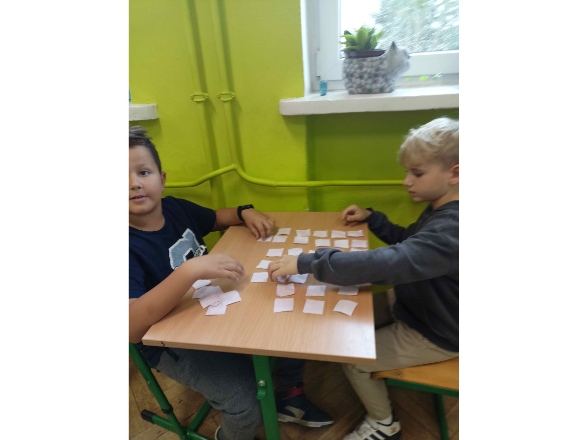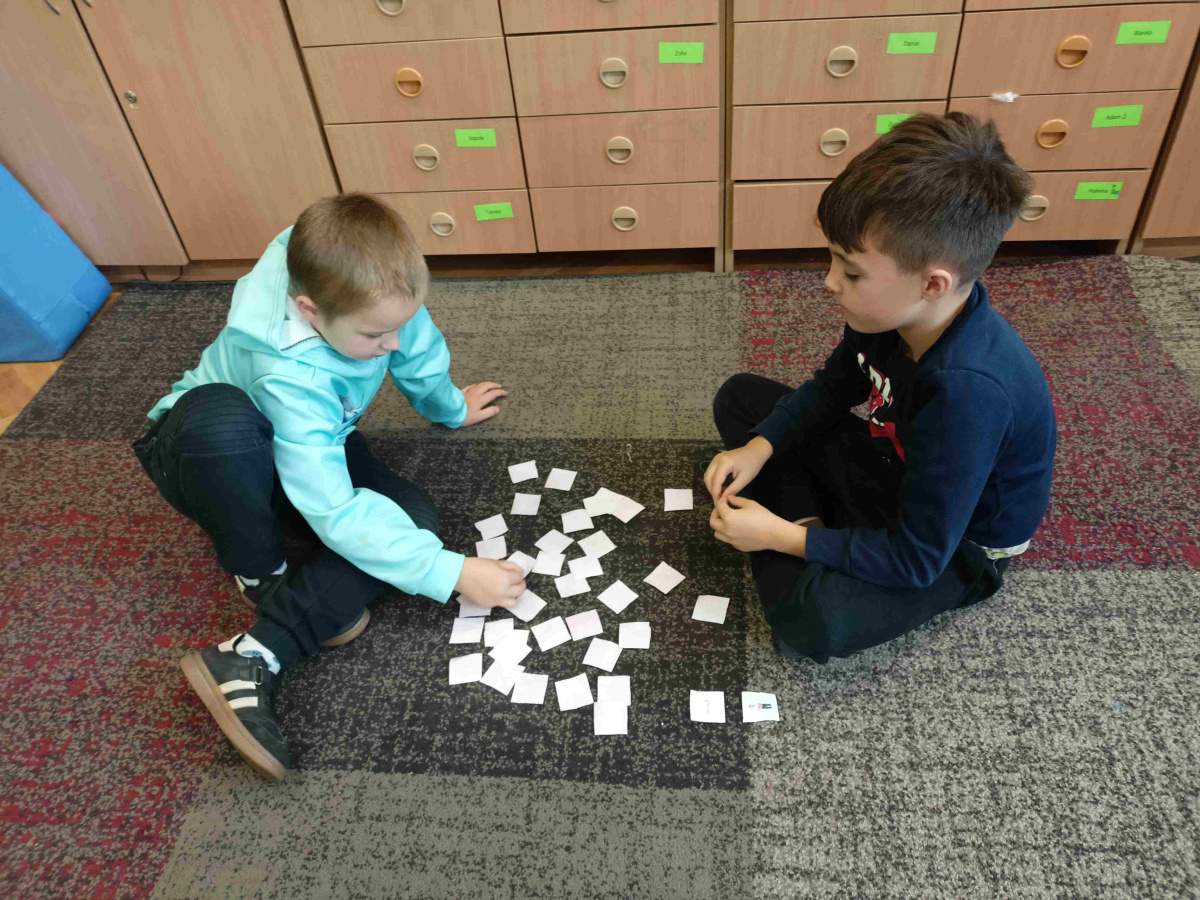 Nauka poprzez zabawę to jedna z lepszych metod przyswajania wiedzy. Uczniowie klasy 2a przygotowali ortograficzne karty memory. Następnie w parach rozpoczęli wspólną grę. Nie było łatwo. Gra pozwoliła dzieciom utrwalić pisownię wyrazów z trudnościami ortograficznymi, stanowiła też doskonały trening koncentracji uwagi i pamięci. Jeszcze do tego wrócimy.