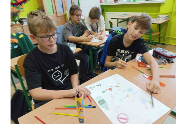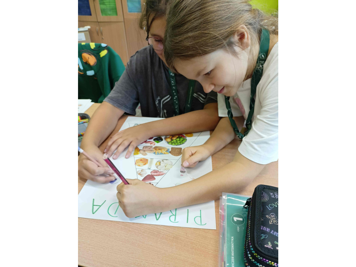 W czasie zajęć techniki uczniowie klas Va i Vb wykonali Piramidę Zdrowego Żywienia i Stylu Życia. Uświadomili sobie, które produkty żywnościowe są bardzo ważne w codziennej diecie. Uczniowie dowiedzieli się również, że oprócz diety ważnym czynnikiem wpływającym na zdrowie jest aktywność fizyczna.
