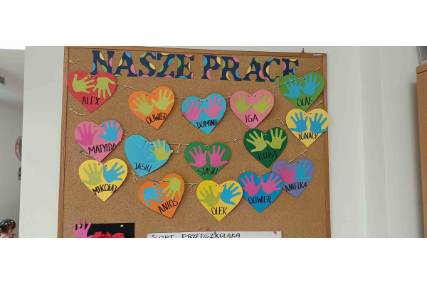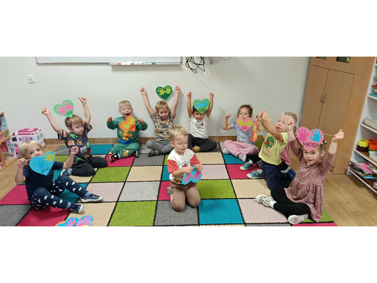 W ramach tygodnia przeciwdziałania przemocy i budowania relacji rówieśniczych, dzieci młodsze wzięły udział w różnych zabawach integrujących grupę. Poznały opowiadanie o budowaniu przyjaźni, stworzyły łańcuch serc, uczestniczyły w zabawach muzycznych.