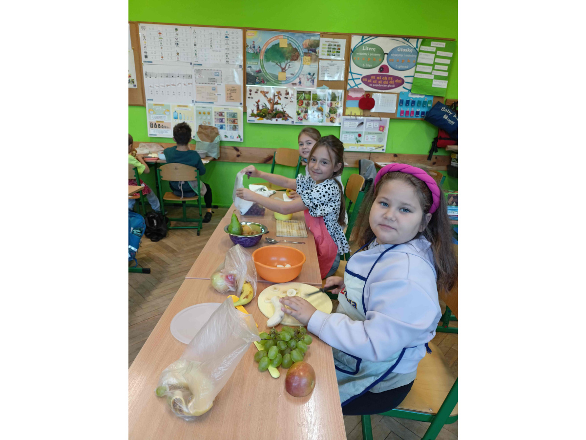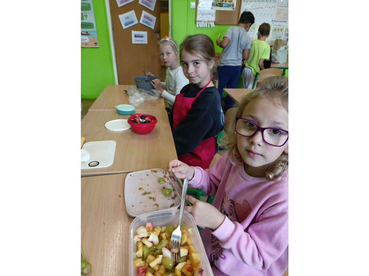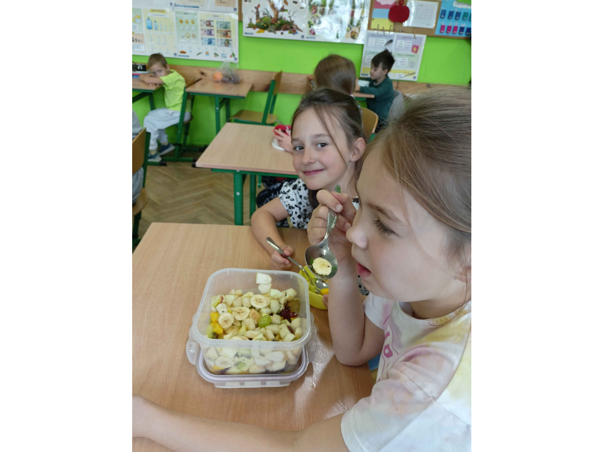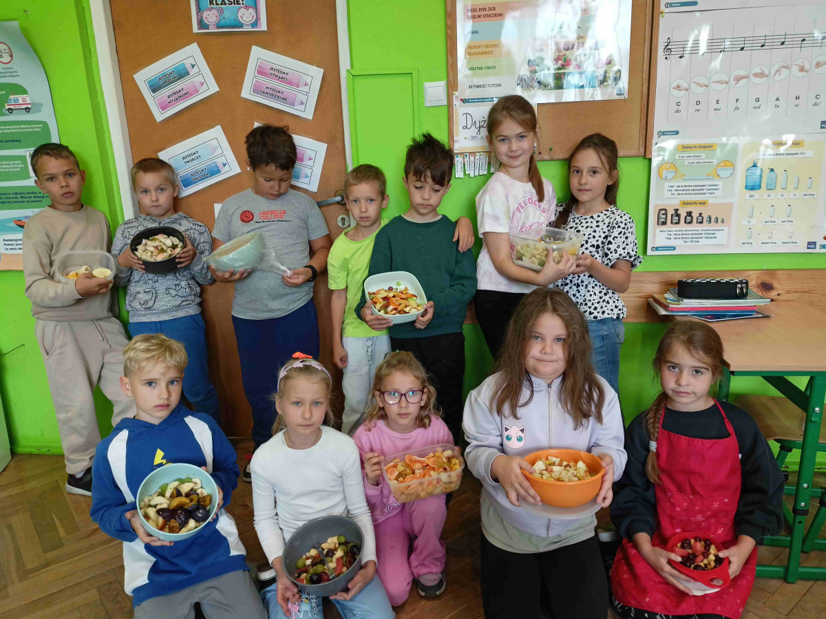O owocach uczniowie klasy 2a wiedzą bardzo dużo. Każdy wie, jak ważne jest jedzenie owoców – nie tylko dlatego, że są smaczne, ale przede wszystkim – zawierają mnóstwo witamin, które chronią i wzmacniają nasz organizm. Dlatego też postanowiliśmy zrobić pyszną i zdrową sałatkę owocową. Robienie jej było doskonałą nauką i zabawą.