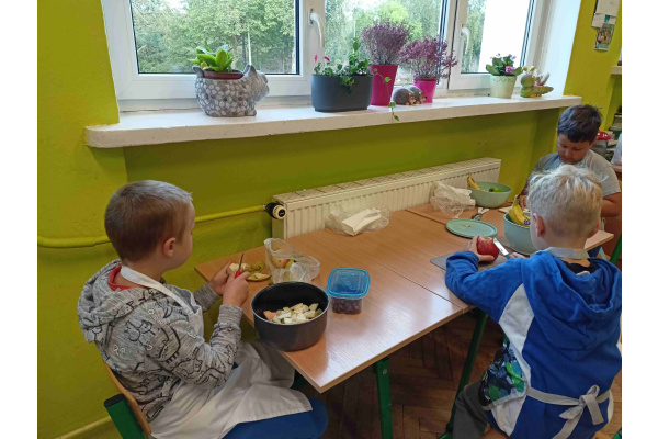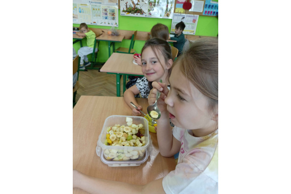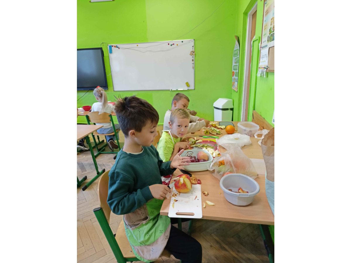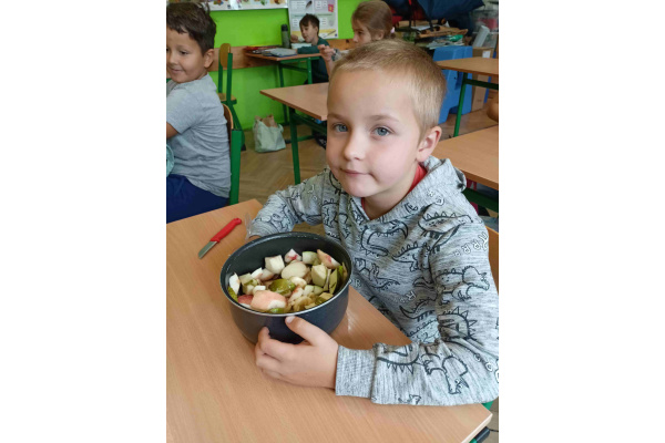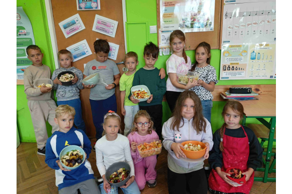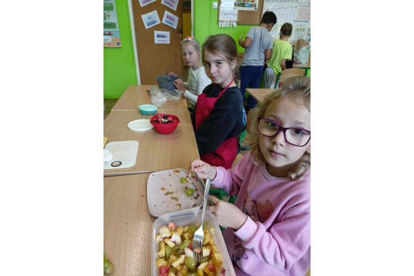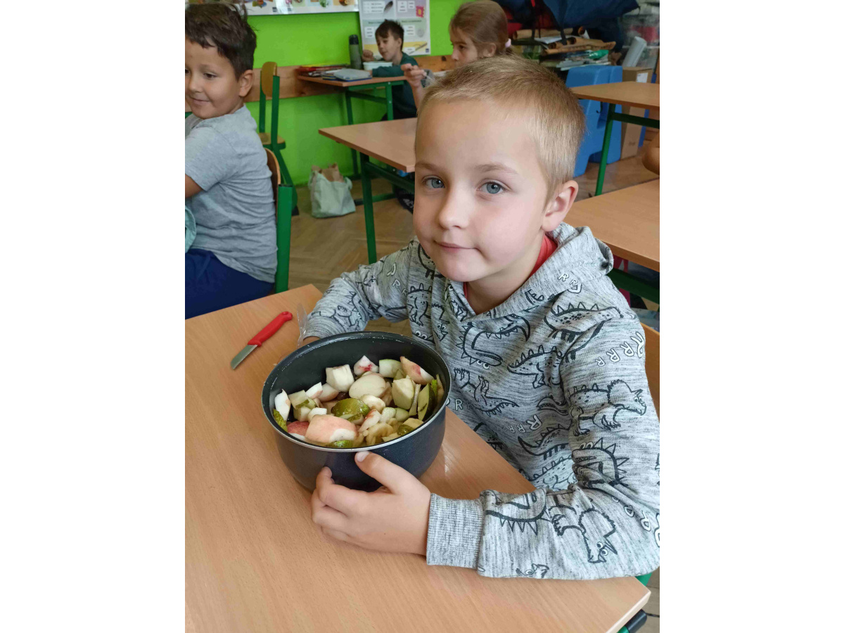 O owocach uczniowie klasy 2a wiedzą bardzo dużo. Każdy wie, jak ważne jest jedzenie owoców – nie tylko dlatego, że są smaczne, ale przede wszystkim – zawierają mnóstwo witamin, które chronią i wzmacniają nasz organizm. Dlatego też postanowiliśmy zrobić pyszną i zdrową sałatkę owocową. Robienie jej było doskonałą nauką i zabawą.
