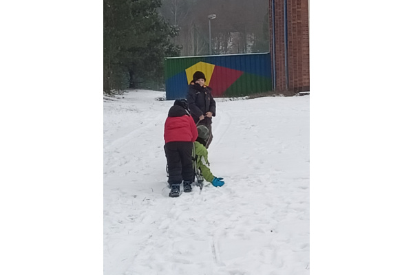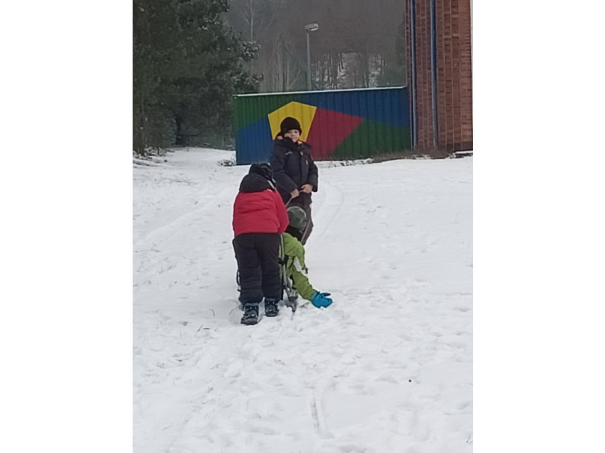 Spadł śnieg i udało się nam po raz kolejny pobawić na dworze. Sanki, odpowiedni strój i wyjście było już możliwe. Śnieżne szaleństwo zawsze dostarcza nam dużo radości.