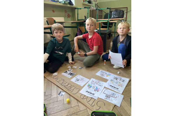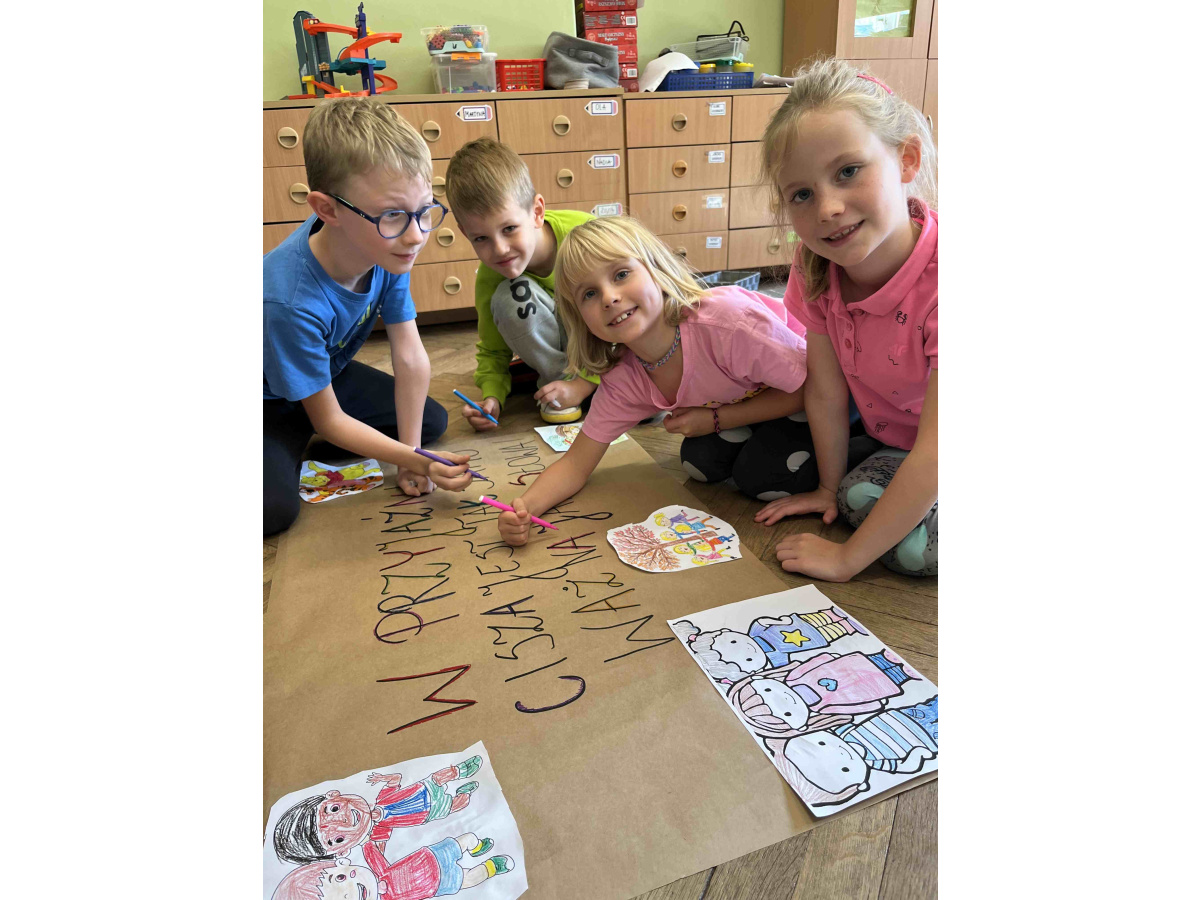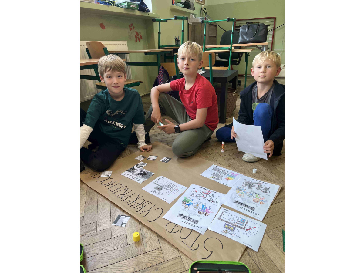 Uczniowie z klasy 2b aktywnie włączyli się w działania związane z Tygodniem Przeciwdziałania Przemocy Rówieśniczej. Każdego dnia mieli okazję przyswoić i poszerzyć wiedzę z zakresu innej tematyki - od emocji, współpracy w grupie po cyberprzemoc i pojęcie przyjaźni. Dzieci chętnie uczestniczyły w zajęciach o tematyce "Siatka wsparcia, razem damy radę", budowały w klasie "most zaufania", poznawały hasła związane z przyjaźnią i cyberprzemocą. W ciągu całego tygodnia uczyły się, jak budować zdrowe relacje, a na zakończenie wzięły udział w uroczystym przemarszu z własnoręcznie wykonanymi plakatami.