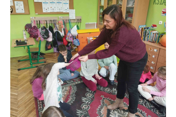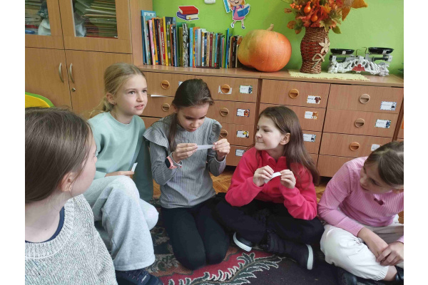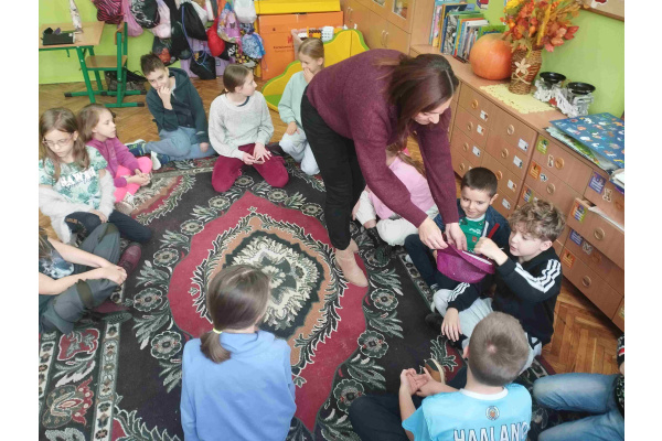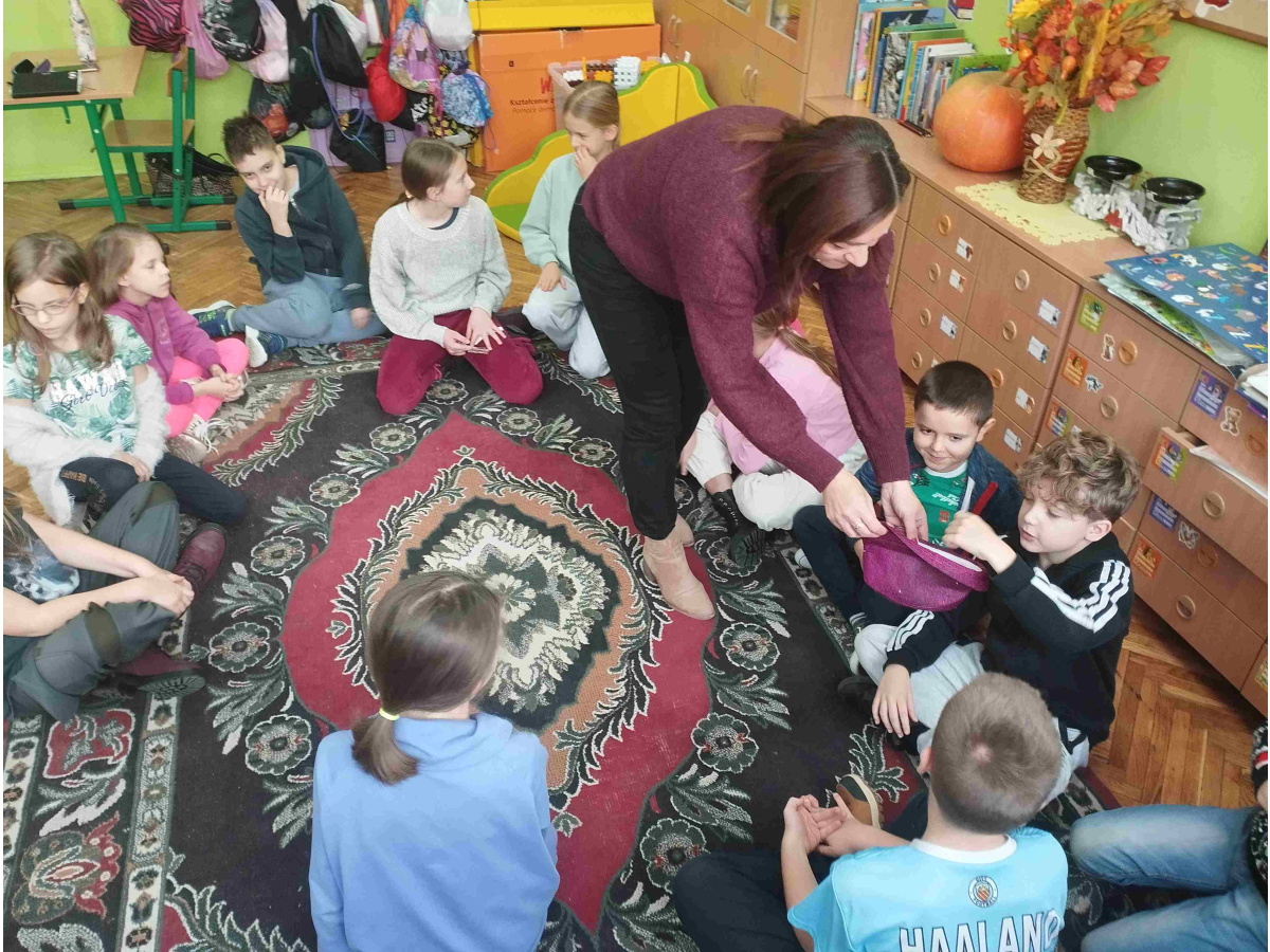 Zgodnie z tradycją andrzejkową uczniowie klasy 3a mieli okazję sprawdzić, co może czekać ich w przyszłości. Dzieci losowały karteczki z kapelusza, na których zapisane były przepowiednie, a ich buty wzięły udział w wyścigu o pierwsze zamążpójście lub ożenek. Było miło i radośnie!
