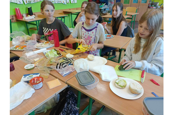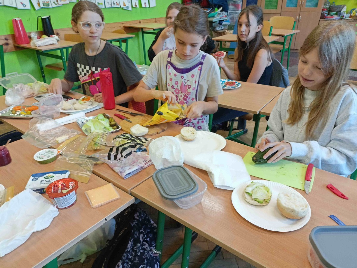 W ramach pierwszych zajęć edukacji zdrowotnej uczniowie klas Va i Vb samodzielne przygotowali pyszne śniadanie z przyniesionych przez nich produktów. Zdrowe i kolorowe kanapki znikały w ekspresowym tempie. Młodzi kucharze już niedługo pokażą swoje kolejne talenty.